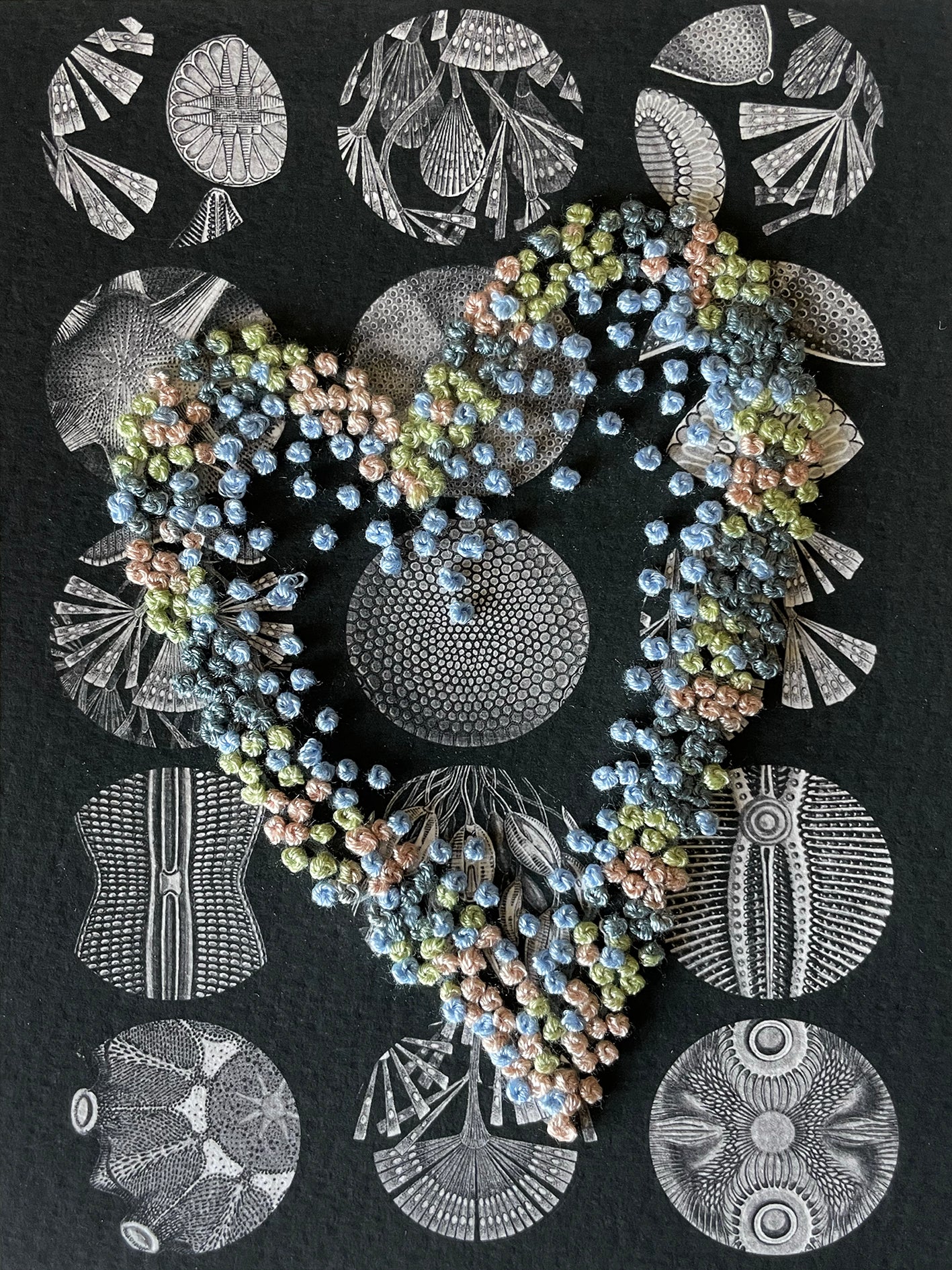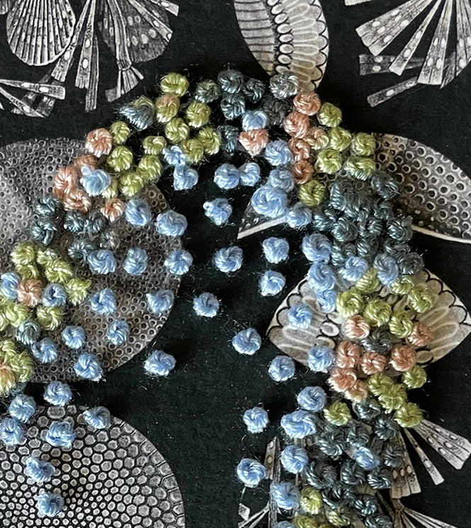 Lithograph printed on 320 G cotton paper embroidered with silk thread.