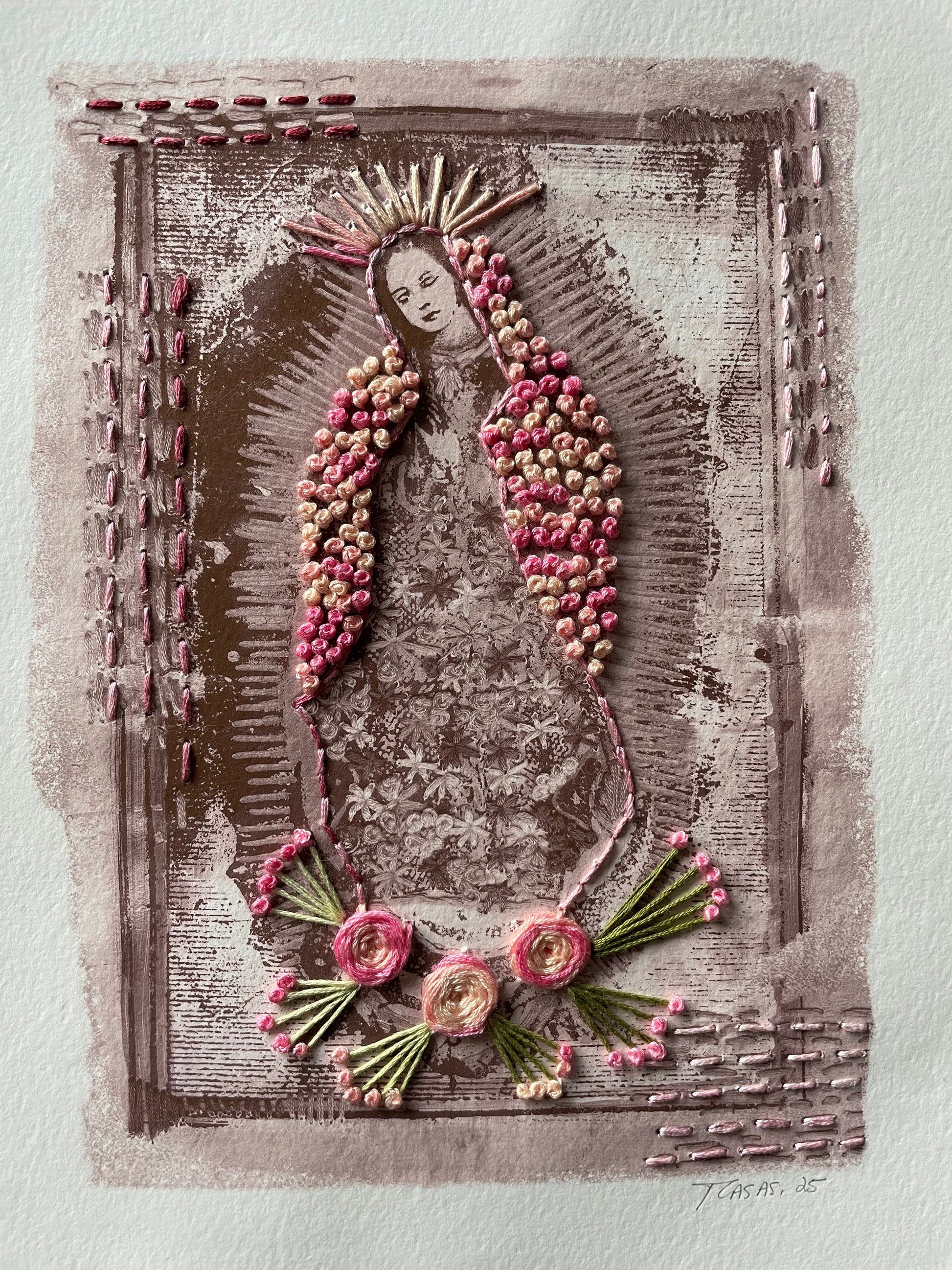 Litografía impresa sobre papel bordado con hilo de seda.